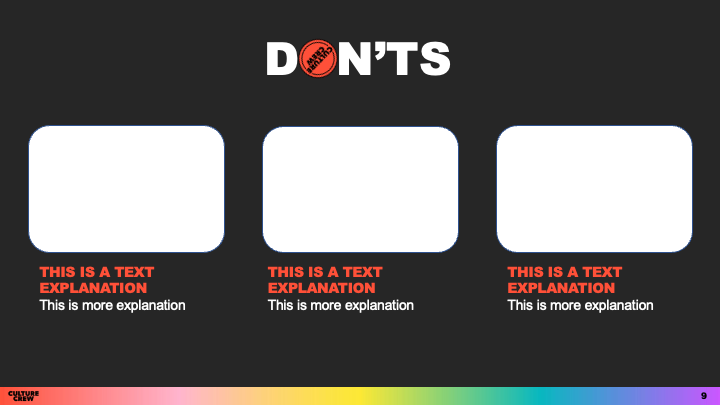Branding guidelines deck for internal employee resource group Culture Crew at NBCUniversal.